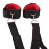 Możesz teraz zaczepić wyściełane kajdanki do jednego (lub dwóch) z 6 pierścieni D-ring.