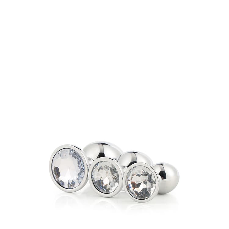 Kolekcja Gleaming Love przedstawia ten zestaw błyszczących zatyczek analnych w 3 rozmiarach, każdy z kamieniem szlachetnym. Te przyjemne zabawki są wykonane z gładkiego, lekkiego aluminium i bez szwu, dzięki czemu są łatwe do przesuwania, a rozkloszowana podstawa zapewnia poczucie bezpieczeństwa, jednocześnie utrzymując klejnot wygodnie między policzkami pośladków. Wysadzane klejnotami zatyczki są pięknie ozdobione delikatnym okrągłym kamieniem szlachetnym. Bezszwowe korki analne od czubka do podstawy mają połyskliwy połysk, który wspaniale łączy się z blaskiem pasującego klejnotu. Zwężający się kształt żarówek wtyczek łączy w sobie łatwość użytkowania z erotyczną przyjemnością z tylnych drzwi. Wtyczki Gleaming Love można przed użyciem podgrzać lub schłodzić w wodzie, aby zapewnić dodatkowe doznania. W zestawie znajduje się worek do przechowywania wykonany z miękkiej aksamitnej tkaniny, który zamyka się sznurkiem. Duża wtyczka: długość 9,5 cm średnica 4,3 cm Średnia wtyczka: długość 8,3 cm średnica 3,4 cm Mała wtyczka: długość 7,1 cm średnica 2,7 cm
