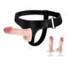 Strap-on z dwoma penisami nie może wiązać się z niczym innym jak z podwójną dawką rozkoszy! W zestawie dildo z jądrami i dildo z przyssawką. Same zdecydujecie na jaką formę przyjemności macie ochotę. Regulowana uprząż gwarantuje bezpieczne i wygodne dopasowanie do każdego rozmiaru bioder. Z przodu znajduje się specjalne mocowanie, które stabilnie utrzymuje dildo, umożliwiając swobodną zabawę erotyczną. Strap-on i dilda zostały wykonane z przyjemnego w dotyku materiału, który potęguje doznania. Załóż uprząż na swoje biodra, wepnij dildo, pobudź wyobraźnie i czerp z przyjemności jak najwięcej!