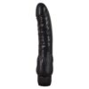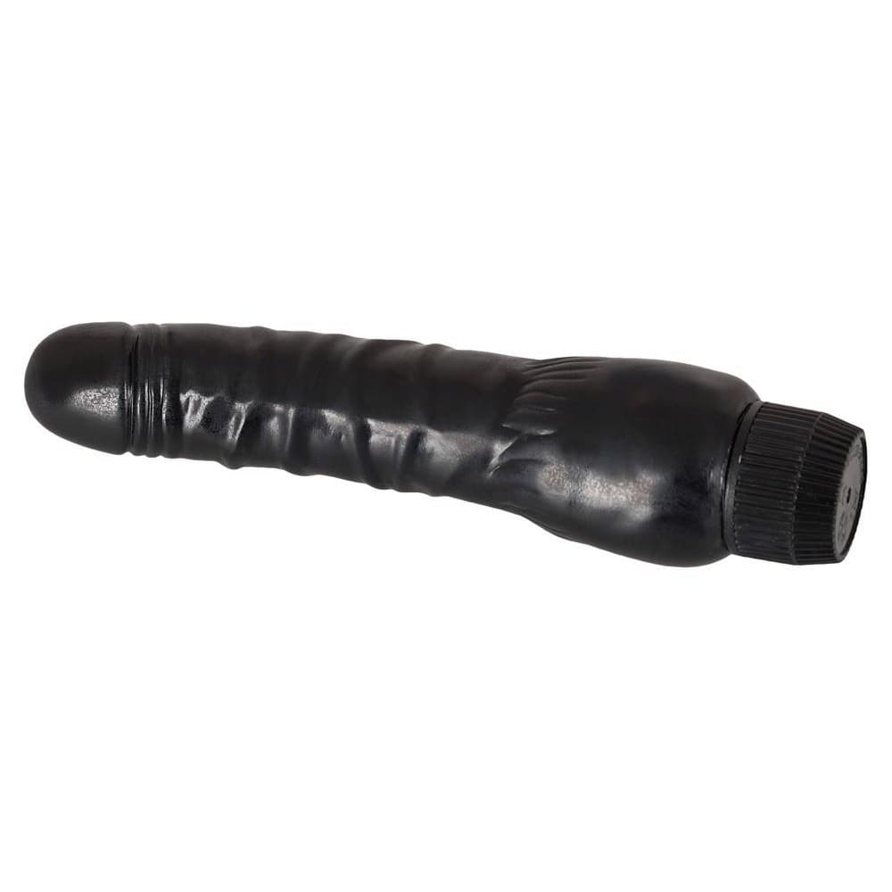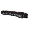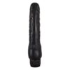 Czarny i mocny wibrator z ogromnymi żołędziami i pulsującymi żyłami.